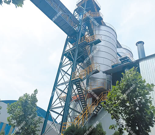 來(lái)自配料系統(tǒng)緩沖倉(cāng)的多種粉體物料經(jīng)倉(cāng)底計(jì)量稱(chēng)計(jì)量后,由空氣輸送斜槽、提升機(jī)將物料輸送至超細(xì)球磨機(jī)內(nèi)進(jìn)行粉磨,粉磨后的合格物料自磨機(jī)出料端排出,由空氣輸送斜槽、提升機(jī)輸送至超細(xì)粉倉(cāng)進(jìn)行儲(chǔ)存,經(jīng)庫(kù)底散裝系統(tǒng)裝車(chē)外售。